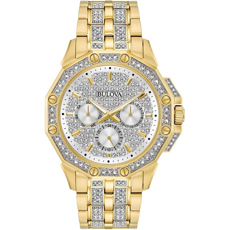 Reloj de cuarzo cronógrafo Bulova Crystal Octava para hombre, esfera de cristal Pave