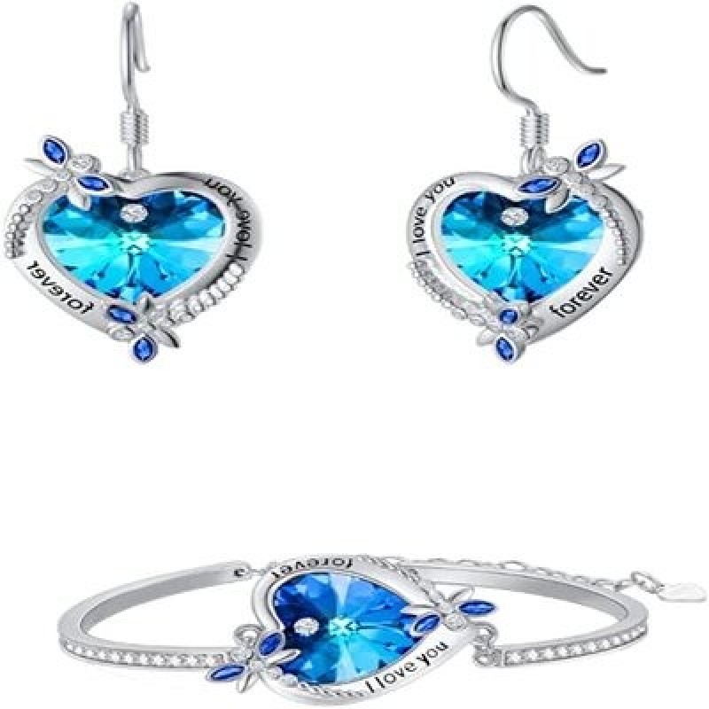 AOBOCO Plata de Ley Te Amo Para Siempre Corazón Libélula Pulsera y Pendientes, Juego de Joyas Aniversario Cumpleaños Regalos para Ella Mujer Esposa Novia Mama