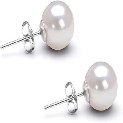 AAAA Blanco Akoya Perla Cultivada Pendientes Stud 14K Oro Ajustes Pendientes Stud para las mujeres