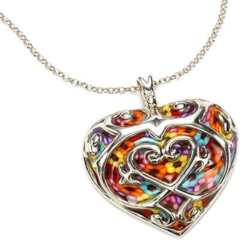 925 Sterling Silver Heart Necklace Romantic Heart-Shaped Fleur de Lis Pendant for Women Handmade Multi-Colored Flowers Pattern Polymer Clay Love Jewelry, 16.5" (plata de ley 925)