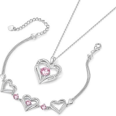 CDE Forever Love Corazón Mujeres Collar Pulsera Set 925 Plata de Ley Chapado en Oro Rosa para Mujer con 5A Circonita Cúbica Navidad Joyería Regalo Cumpleaños para Mamá Mujeres Esposa