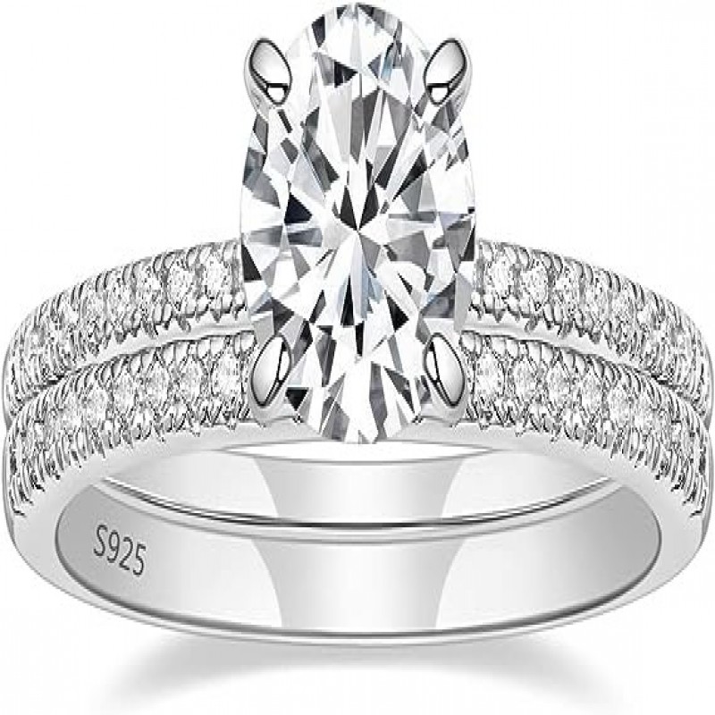 EAMTI 1.25CT 925 Plata de Ley Anillo de Novia Conjuntos Redondos