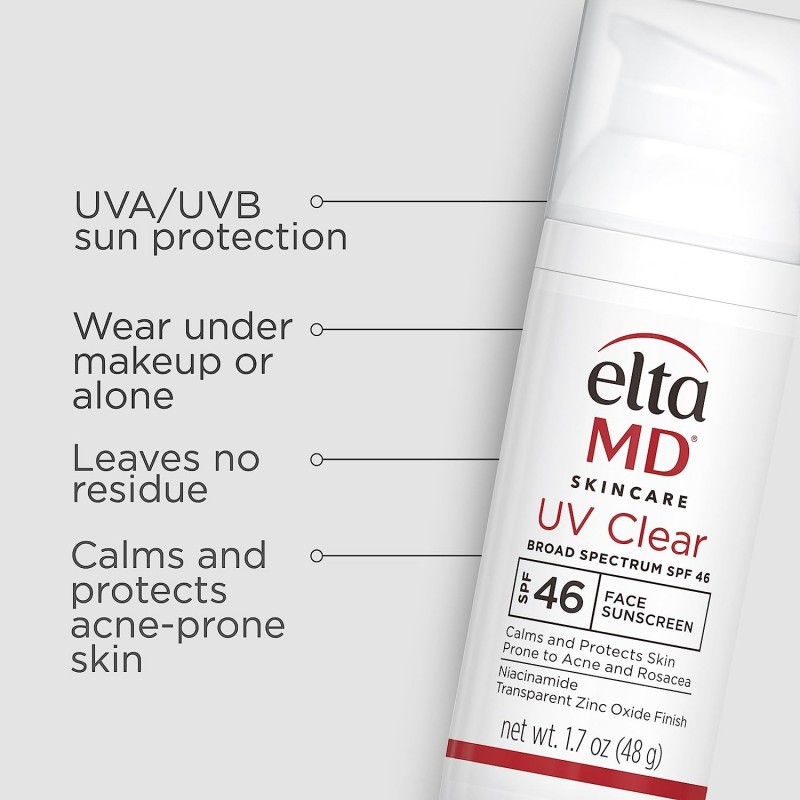 Protector solar facial EltaMD UV Clear, SPF 46 Protector solar sin aceite con óxido de zinc