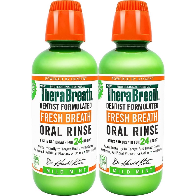 TheraBreath Enjuague Bucal Aliento Fresco, Sabor Menta Suave, Sin Alcohol, 16 Fl Oz (2-Pack)