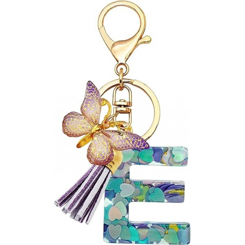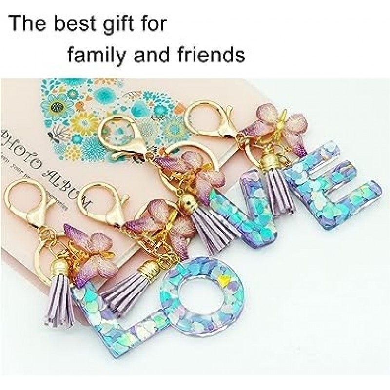 TTYY Llaveros Letra Inicial para Niñas Rosa Morado Verde Lindo Corazón de Mariposa Llavero para Mochila Bolsa Escolar