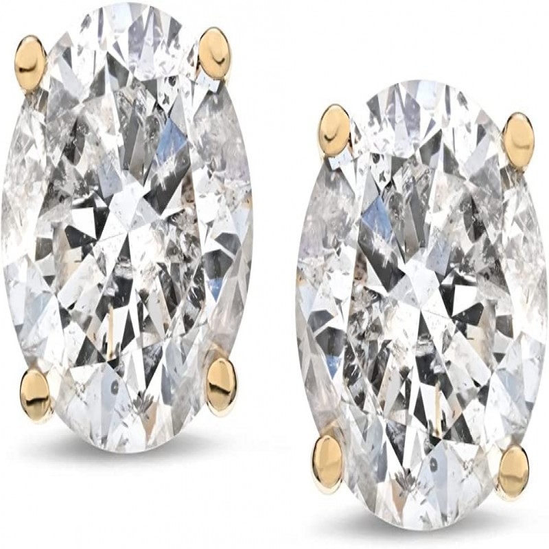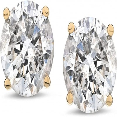 Pendientes de oro de 14 quilates con diamante certificado (color J-K, pureza I1-I2)