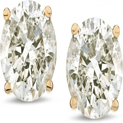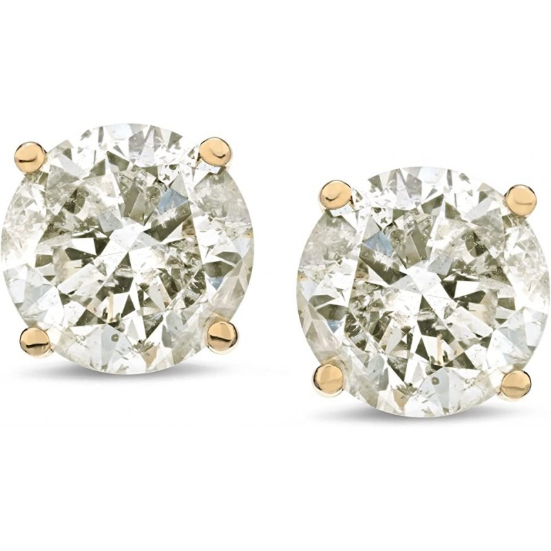 Pendientes de oro de 14 quilates con diamantes de talla redonda (1/4-2 cttw, color J-K, pureza I2-I3)