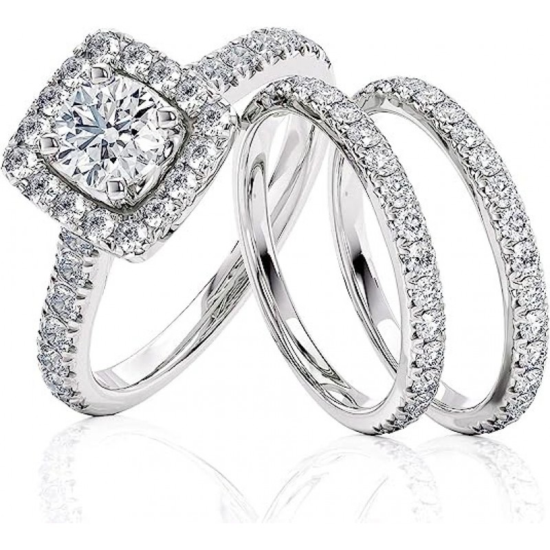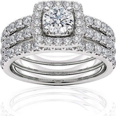 Anillo de compromiso de diamantes de 2 quilates para mujer de Beverly Hills Jewelers en oro blanco de 14 k