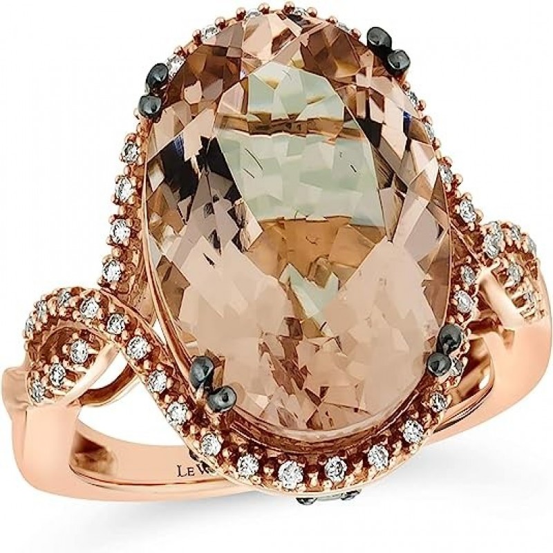 Anillo de compromiso con halo de morganita ovalada y diamante de 1/4 quilate para mujer en oro rosado de 14 k (Marrón elegante/G-H, VS2-SI2, cttw) Anillo de aniversario Promise, tamaño 5 a 10 por LeVian
