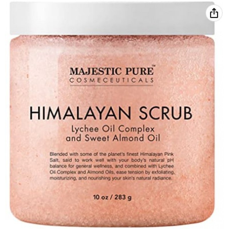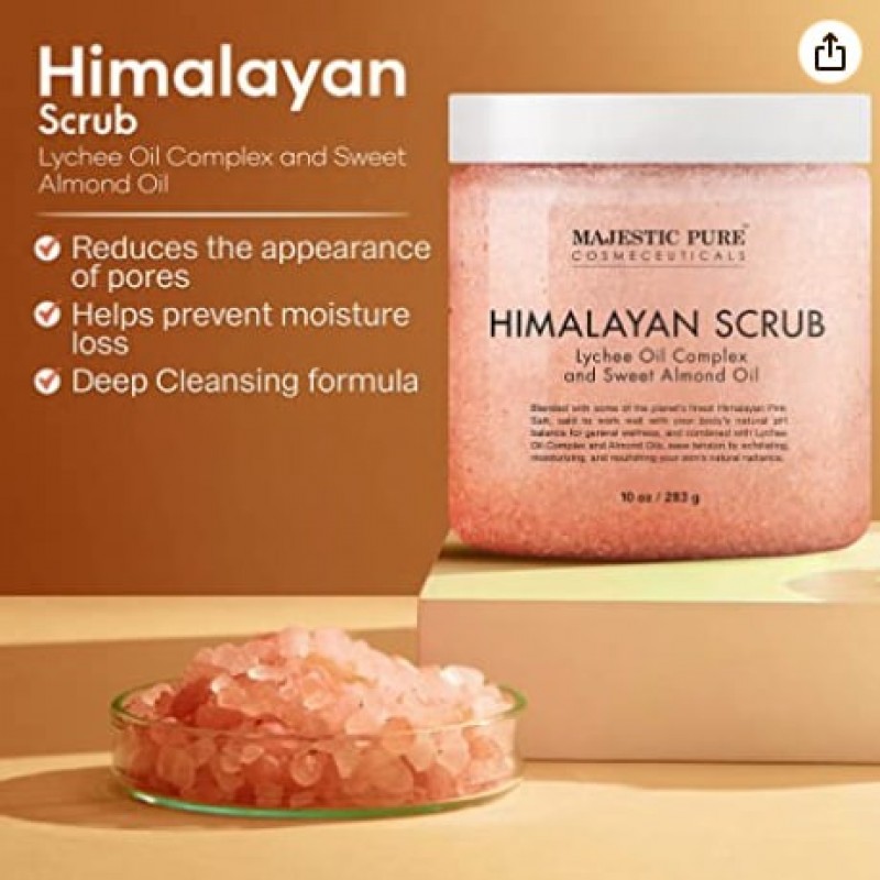 MAJESTIC PURE Himalayan Salt Body Scrub with Lychee Oil, Exfoliating Salt Scrub to Exfoliate & Moisturize Skin, Deep Cleansing - 10 oz