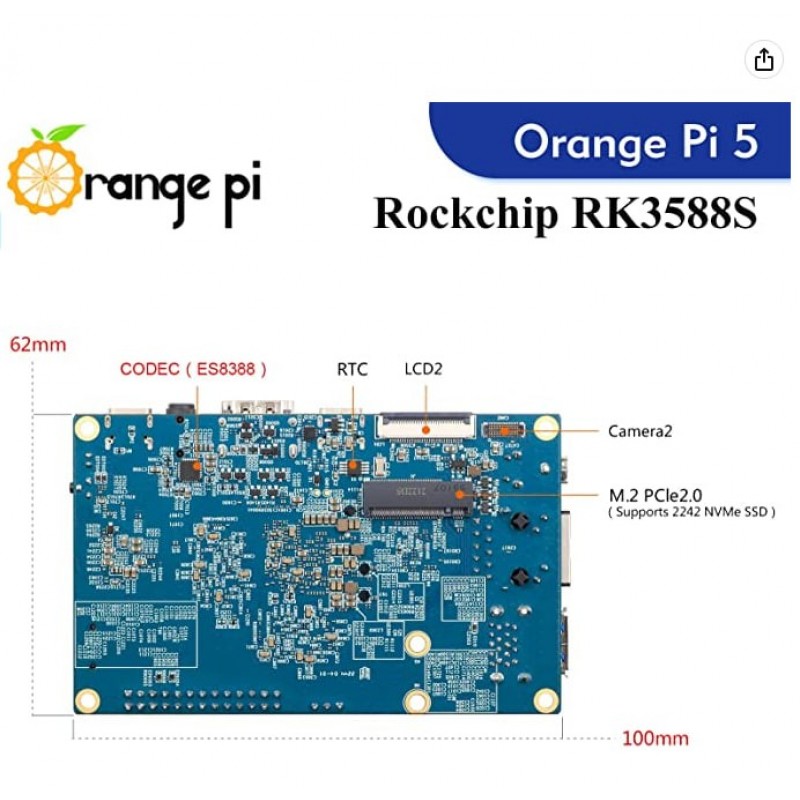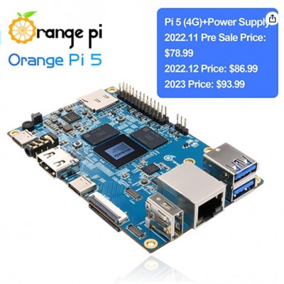 Orange Pi 5 4GB Rockchip RK3588S 8 Core 64 Bit Single Board Computer, 2.4GHz Frequency Open Source Development Board Mini PC Desktop Run Orange Pi OS, Android12, Debian11 (Pi 5 4GB+5V4A Type C Supply)