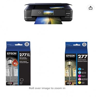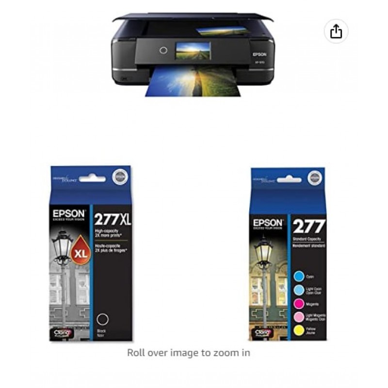 Impresora fotográfica en color inalámbrica Epson Expression Photo XP-970 y cartucho de tinta negro EPSON T277 Claria Photo HD de alta capacidad y cartucho de tinta EPSON T277 Claria Photo HD de capacidad estándar para 5 colores