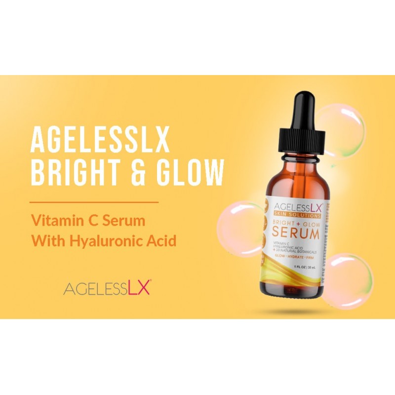 AgelessLX - Bright + Glow Face Serum - Suero de Vitamina C para el Rostro con Ácido Hialurónico - Suero Iluminador para Ojeras, Líneas Finas y Arrugas