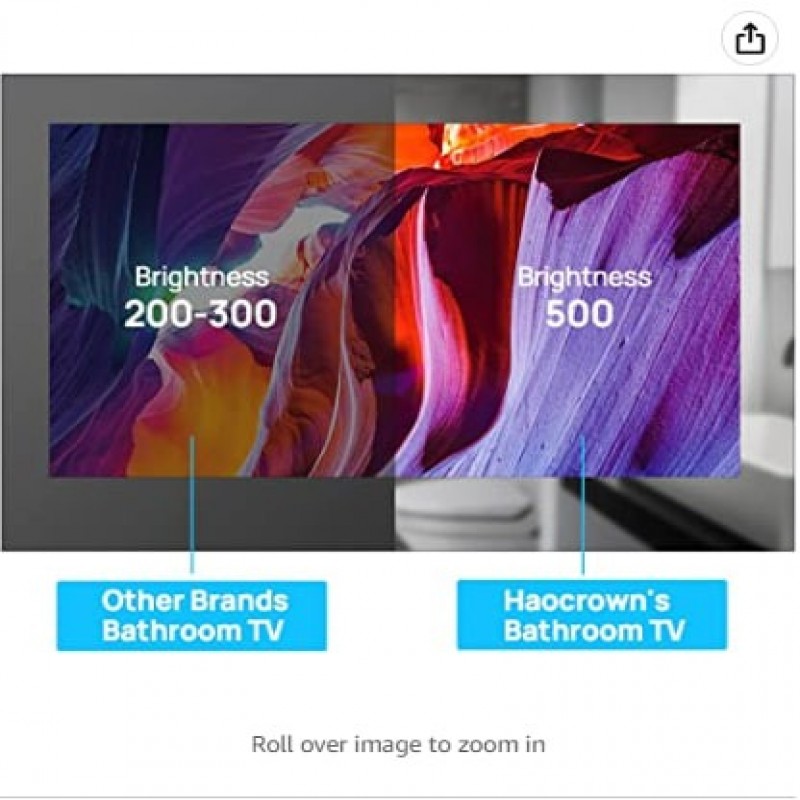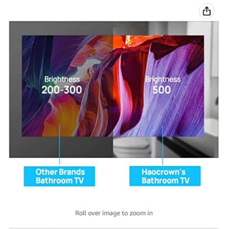 Haocrown 27 Pulgadas Impermeable Baño TV Espejo Inteligente Pantalla Táctil Android 11 Televisión, 500 cd/㎡ Alto Brillo Full HD 1080P Incorporado 2.4G/5G Wi-Fi Bluetooth Sintonizador ATSC (8+64GB, 2023)