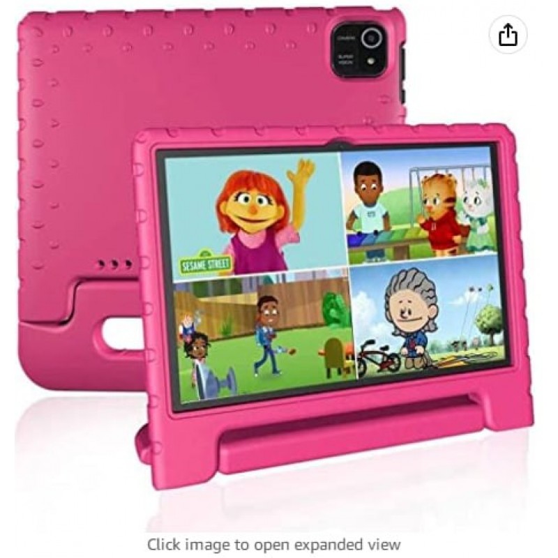 JREN Kids Tablet, 10" Tablet pc,IPS HD Display 1280 X 800,1080p, Ram 2GB and 32GB Storage, Bluetooth, Wi-Fi,Kidoz Pre-Installed, Dual Cameras,Color Pink
