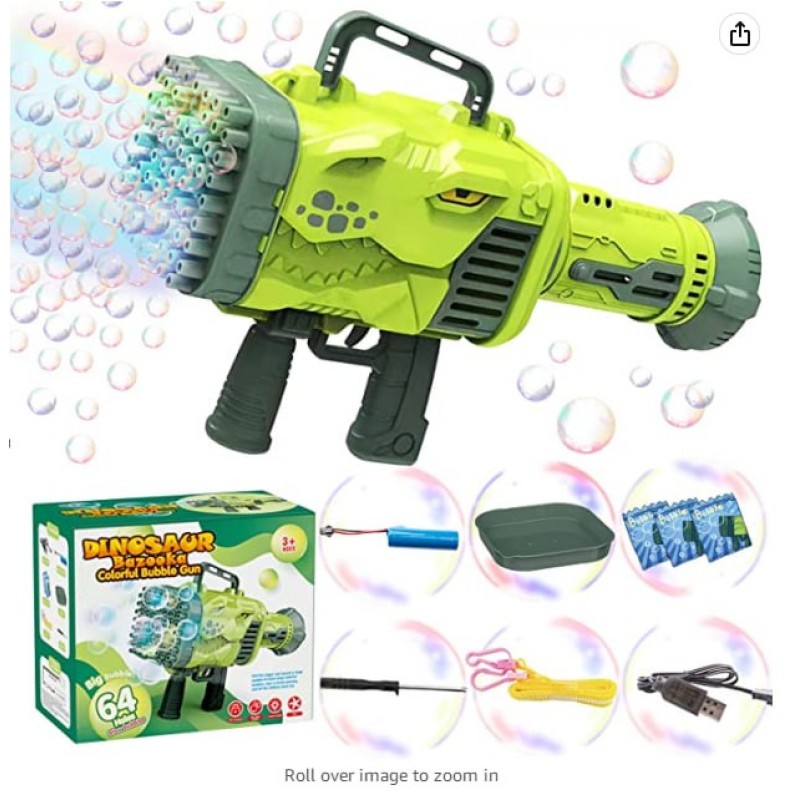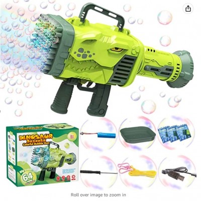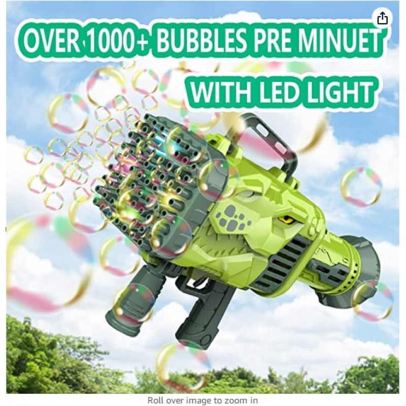 Máquina de Burbujas para Niños, Pistola para Hacer Burbujas Estilo Bazooka de Dinosaurio con Luz LED, 1000+ Burbujas por Minuto, Máquina de Burbujas para Niños Pequeños Cumpleaños Fiesta de Bodas, con 3 Soluciones de Burbujas