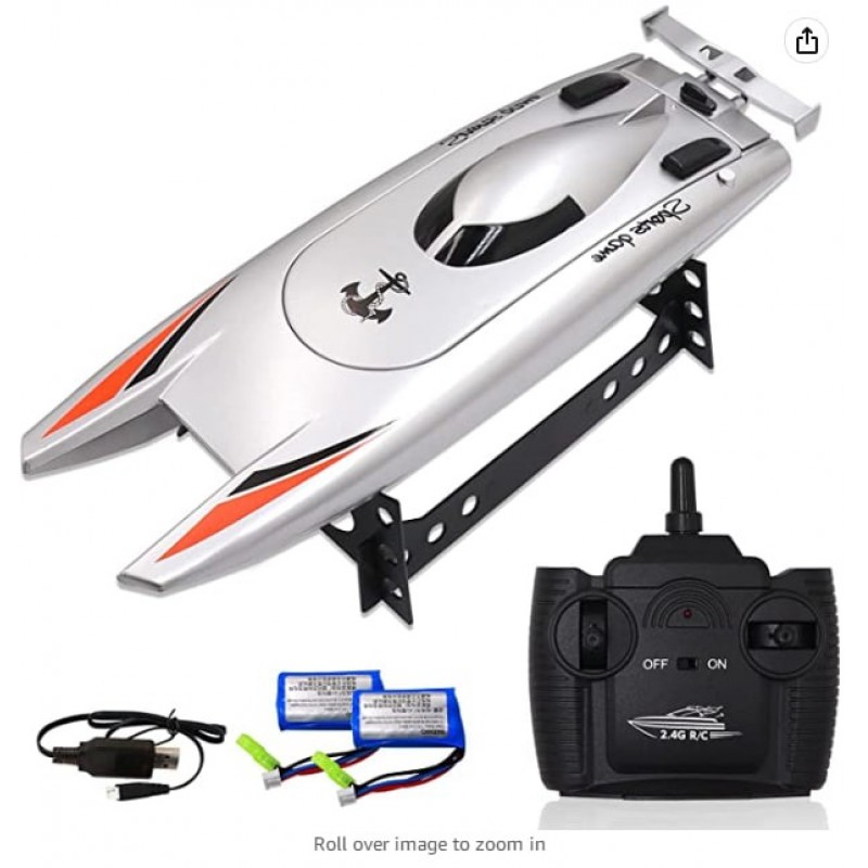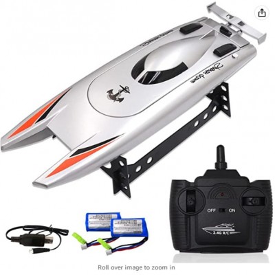 Barco teledirigido para piscinas y lagos,2.4 GHz 30KM/H Alta velocidad Rc Barco de juguete con 2 pilas recargables para niños y adultos