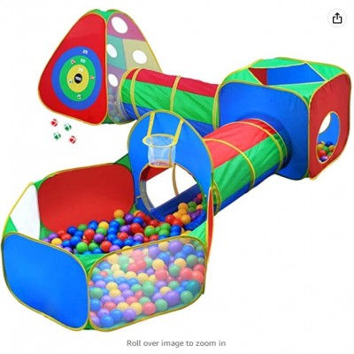 Hide N Side 5pc Kids Ball Pit Tents and Tunnels, Toddler Jungle Gym Play Tent with Play Crawl Tunnel Toy, for Boys Babies Infants Children, Indoor Outdoor Gift, Target Game w/ 4 Dart Balls