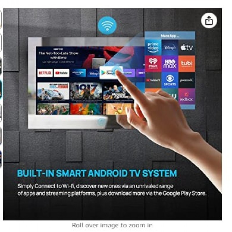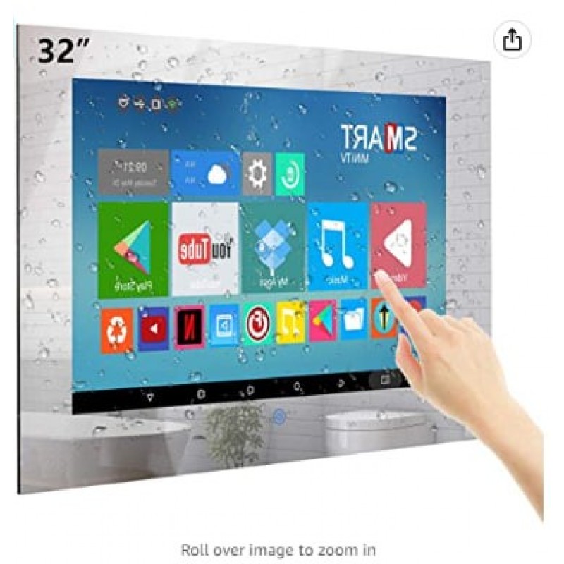 Haocrown 【H2 Chip sistema Android 11.0 y 500 cd/㎡ de alto brillo 2023 Model】. TV de baño con pantalla táctil de 32 pulgadas IP66 impermeable Smart Mirror TV 1080P LED TV sintonizador ATSC incorporado Wi-Fi Bluetooth(8GB+64GB).