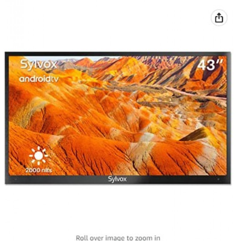 SYLVOX Outdoor TV, Smart Outdoor TV 43" 2000 Nits Full Sun, 4K UHD resistente a la intemperie Televisión al aire libre con control de voz Chromecast incorporado, IP55 Android TV para exterior (Pool Pro Series)