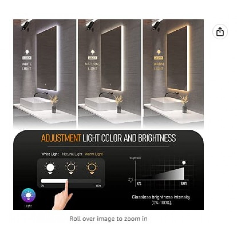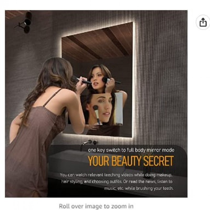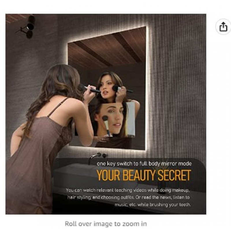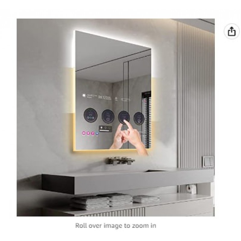 Leotachi 33" x 24" Smart Bathroom Vanity Espejo Impermeable Construido en 21.5" Pantalla Táctil TV con Iluminación Led Ajustable de 3 Colores/Bluetooth/Previsión Meteorológica/Monitorización de la Salud/Watch Streaming