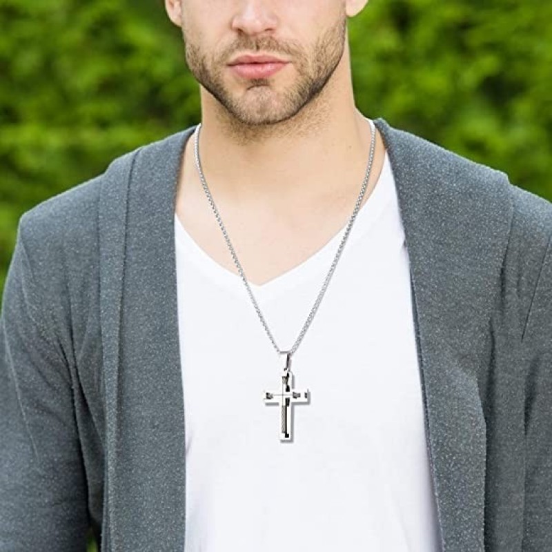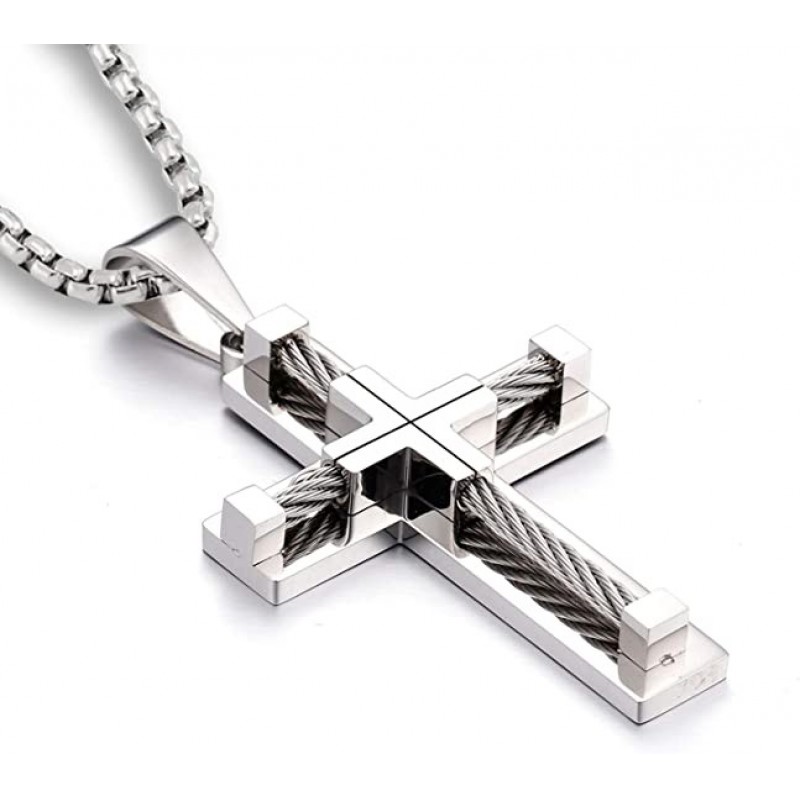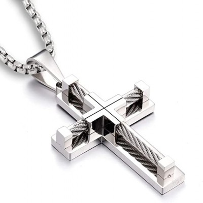 YL Hombres Cruz Collar de Acero Inoxidable 316L Jesucristo Colgante Blanco / Oro / Negro Rolo Cadena Joyería