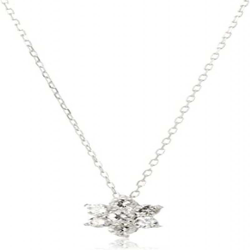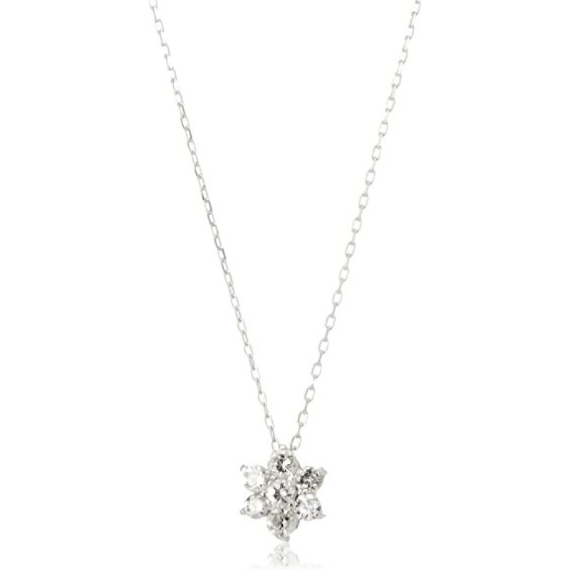 D-COLLECTION K18 Oro Blanco K Collar Flor Siete Diamantes 0.2 Quilates DTP5167WG