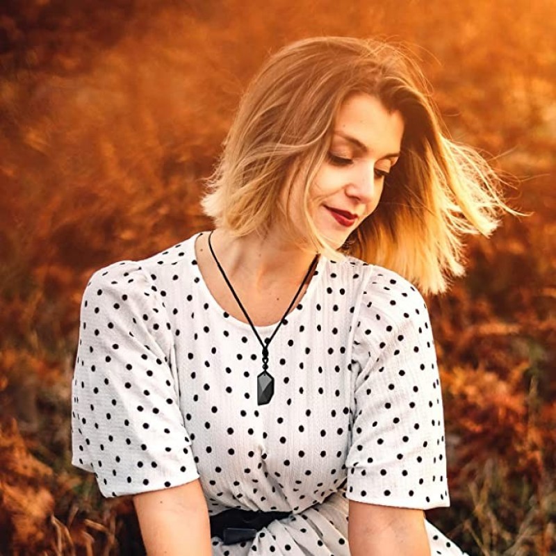 XIANNVXI Hombres Negro Collar * amatista Piedra Collar Gema Natural Ajustable Cuerda Colgante Collar Joyería para Hombres y Mujeres