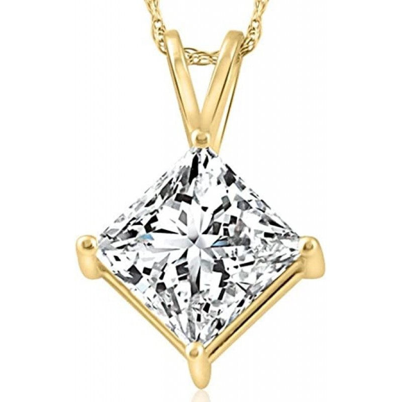 3.09 Quilates Certificado Corte Princesa Colgante de Diamante Único Laboratorio de Oro Plantación