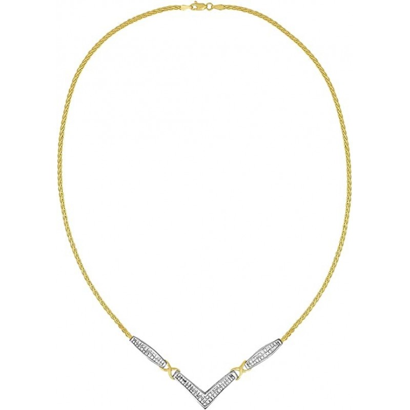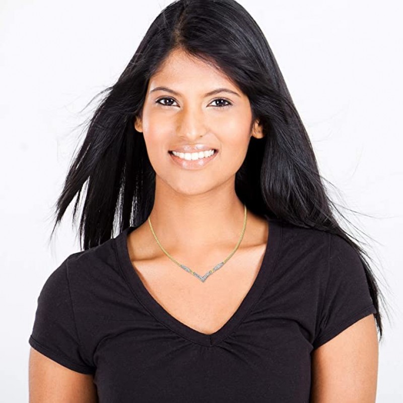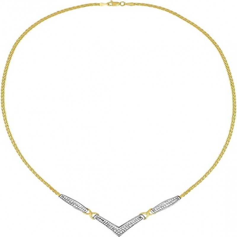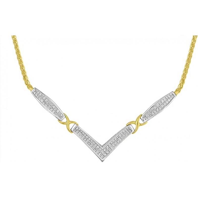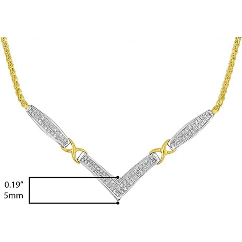 14K Oro y Platino 2.0 Cttw Corte Princesa Diamante Cuerno y Estación en forma de X en forma de V 45.72 cm Collar Manifiesto (H-I Color, SI2-I1 Claridad)