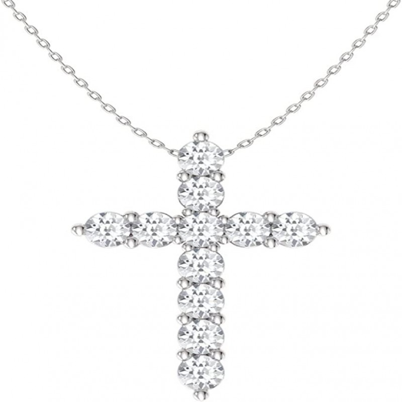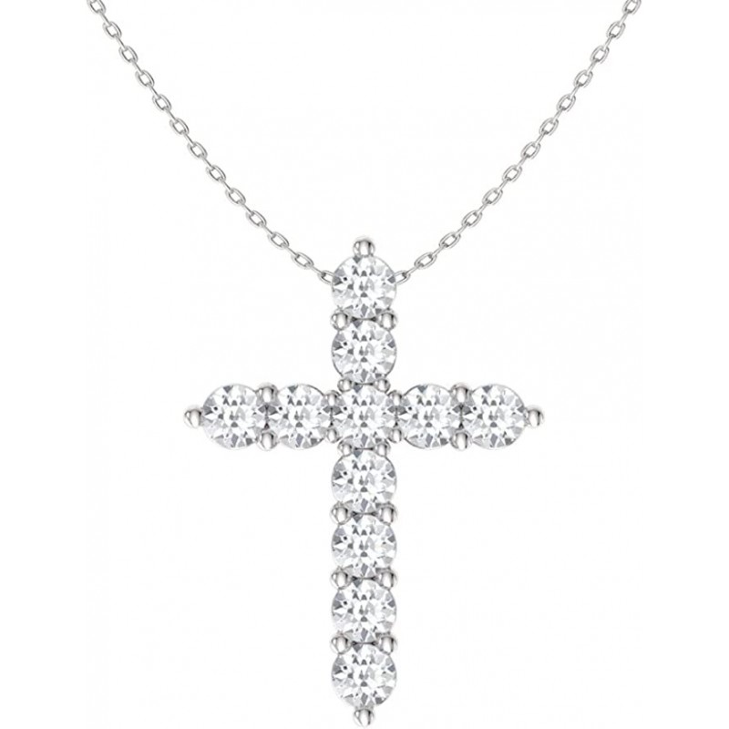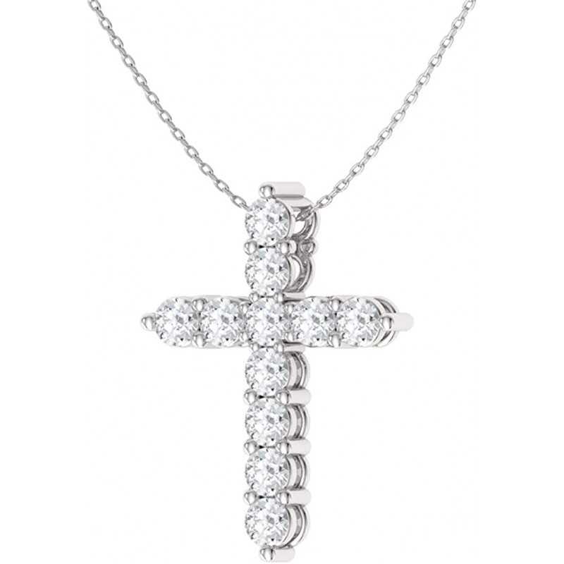Diamondere Diamante Natural Certificado Cruz Pequeño Collar 14k Oro Blanco | 1.61 Quilates Colgante Cadena, Metal, Diamante