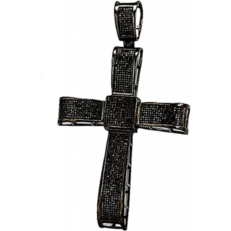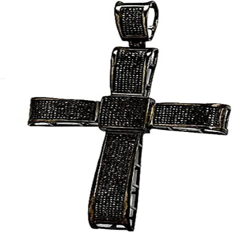 2.00 Quilates (ctw) Plata de Ley Micro Denso Diamante Negro Colgante Cruz Religiosa Hip Hop para Hombre
