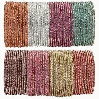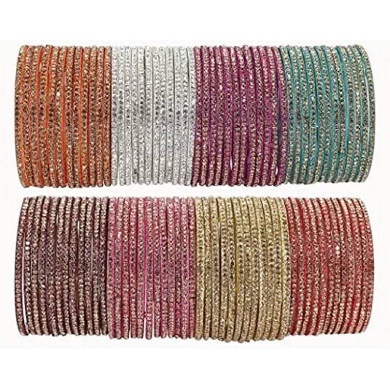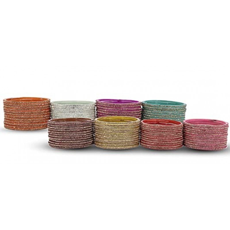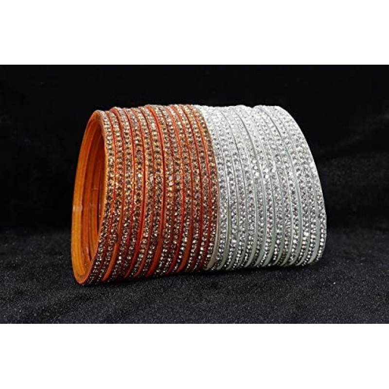 NMII de vidrio con piedras preciosas de circón y perlas Studdded brillante acabado tradicional brazalete conjunto para mujeres y niñas