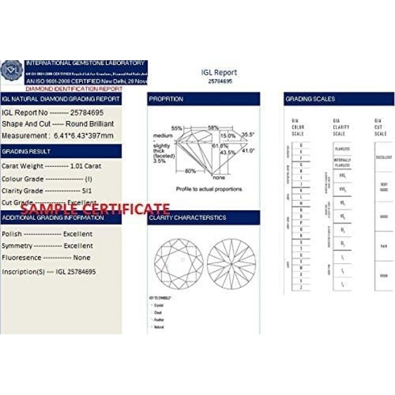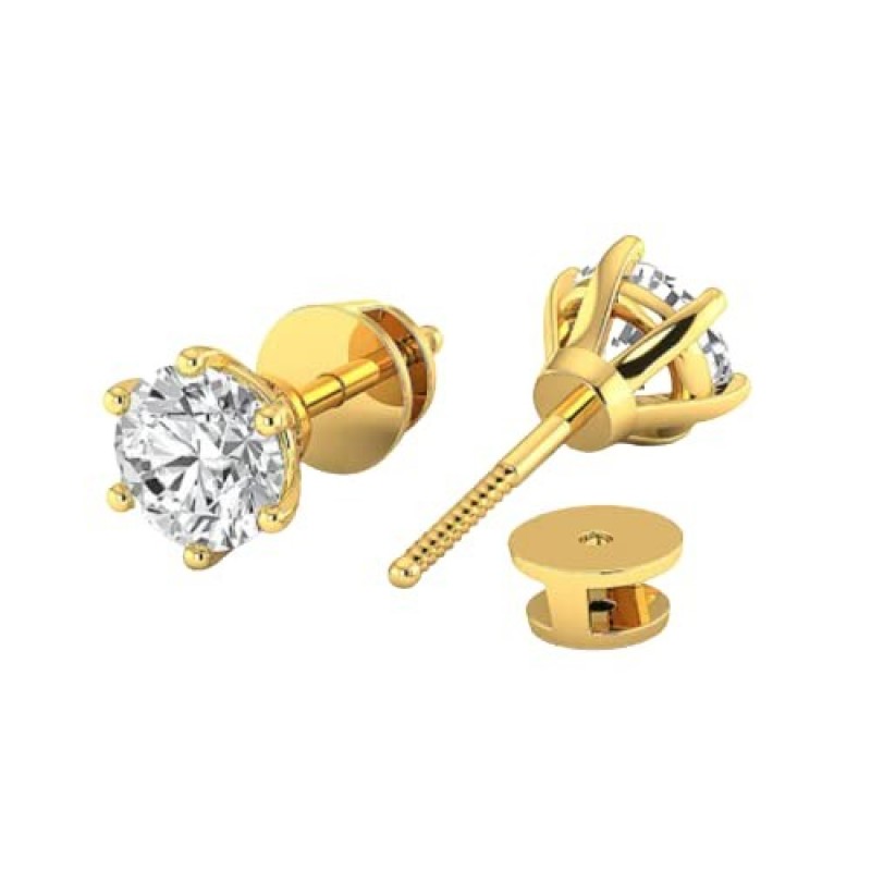 Gemestic Maravilloso Incoloro, Claridad VVS1, 2 Quilates Color F Corte Redondo Diamante Real Pendientes Oro Amarillo 18K Certificado Por IGL A1 Calidad Atractiva Heera Gemstone Studs Para Mujeres y Niñas