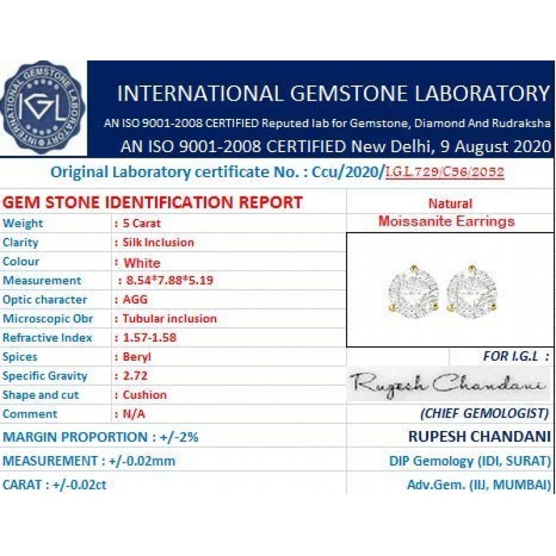 Cuonna Gems Gallery Premium Shine & Design Pendientes de diamantes moissanita en oro amarillo de 1,30 quilates Original Certificado