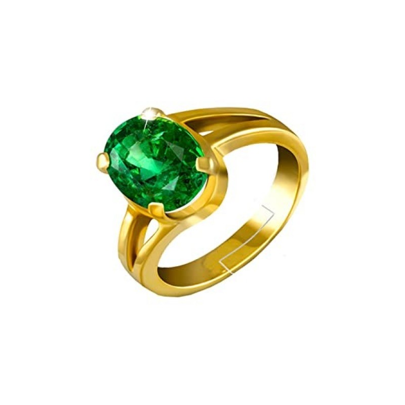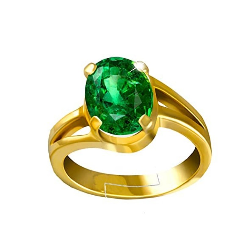 Rashigems 4.75 Crt.Cultured Emarald/Panna Panchdhatu Gold Plated Birthstone/Astrology/Rashi Ratan Anillo ajustable para hombres y mujeres