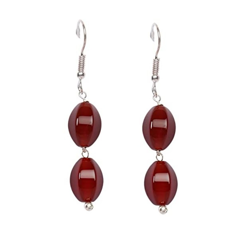 SATYAMANI Cornalina Natural Facetada Trendy II Pendiente Semiprecioso