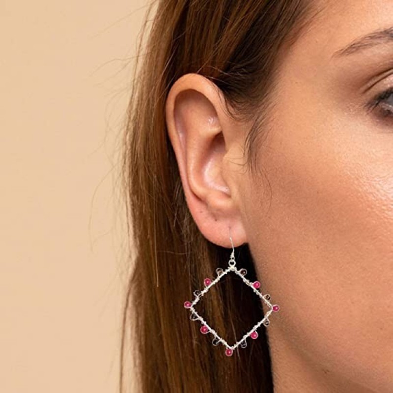Pendientes de turmalina rosa y cuarzo ahumado SATYAMANI