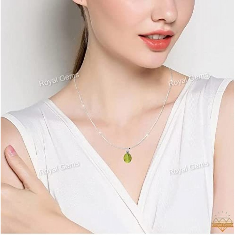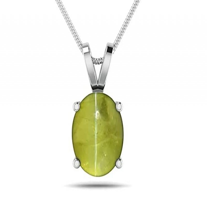 Royal Gems Atractivo Crisoberilo Ojo de Gato Colgante Lahsuniya Relicario para Mujer y Hombre AAA+++ Calidad Color Verde Natural Srilankan Ceylon Ojo de Gato Piedra Original Certificada por Laboratorio