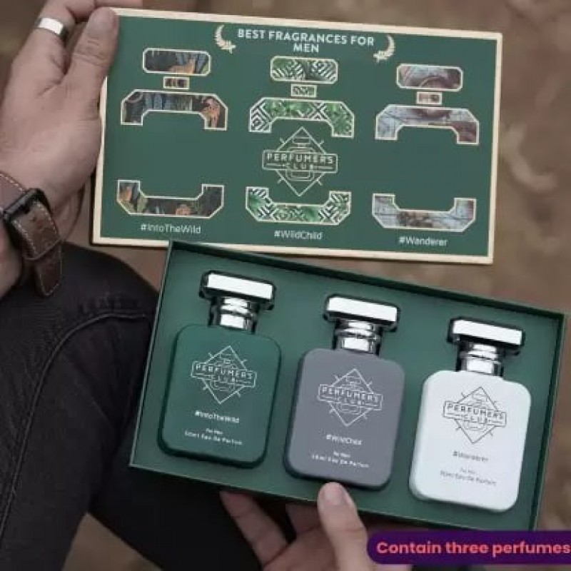 PERFUMERS CLUB "Best Fragrance for Men 2020" Gift Set of 3(Into The Wild + Wild Child + Wanderer) Upto 24 hrs lasting Eau de Parfum - 150 ml (For Men)